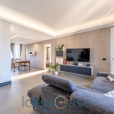 L’appartamento è caratterizzato da ampi spazi e un design moderno.