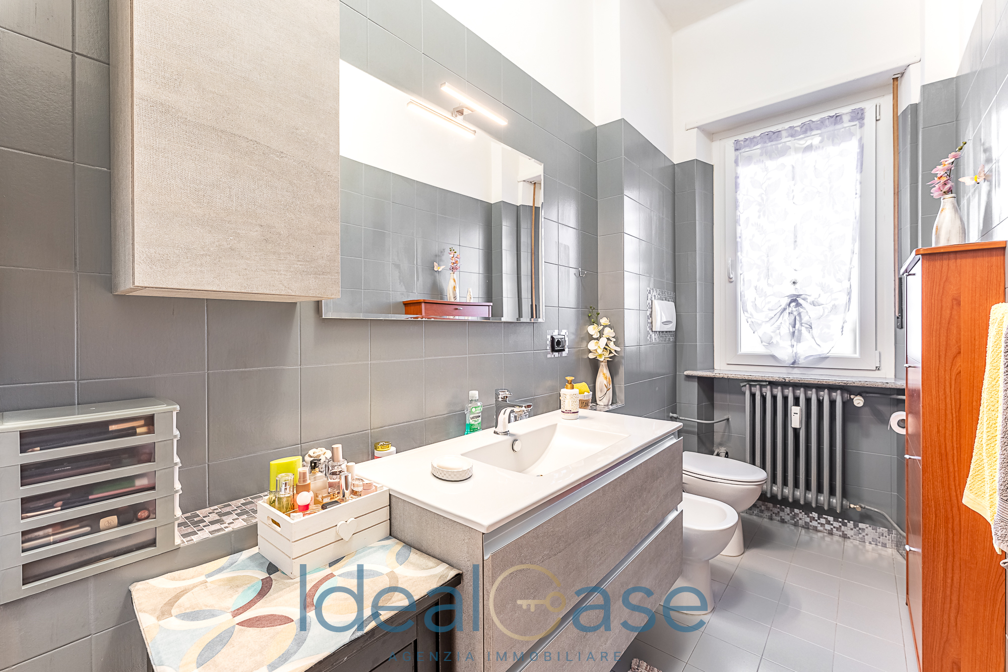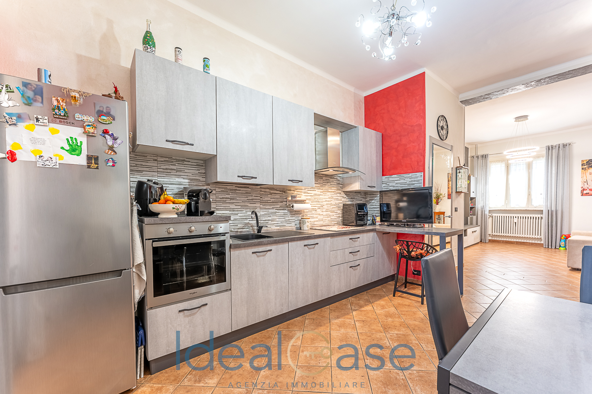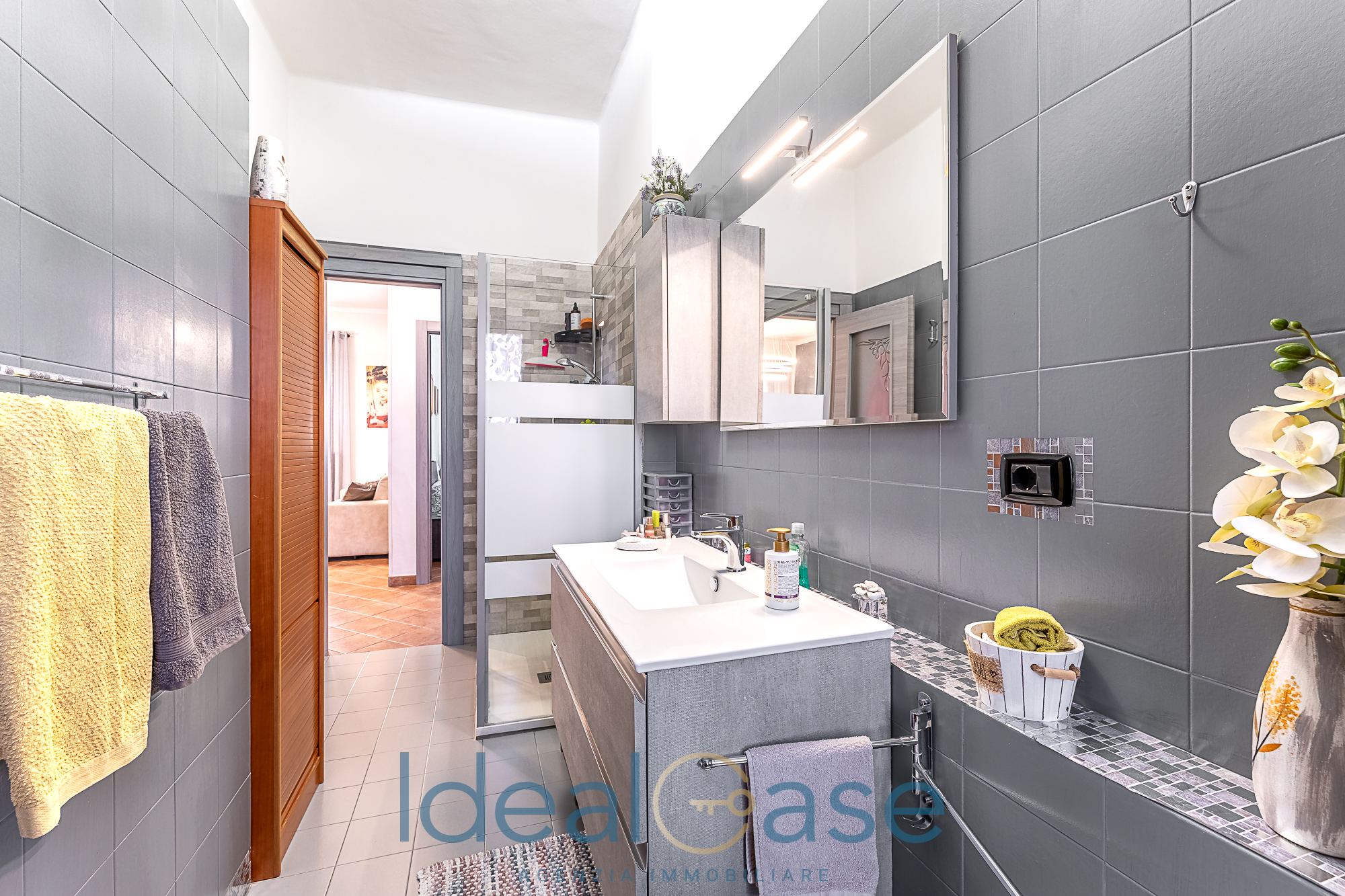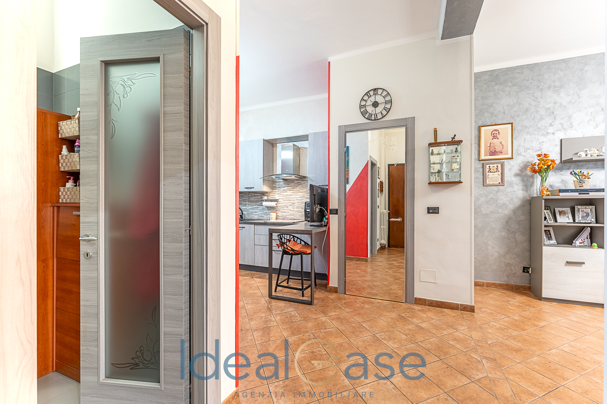 L’interno si apre su un disimpegno che conduce alla zona living con cucina abitabile e a una spaziosa camera matrimoniale. Il comfort è garantito da un pratico ripostiglio, un bagno moderno e un balcone verandato sapientemente organizzato come zona lavanderia (completo di lavabo e attacchi).